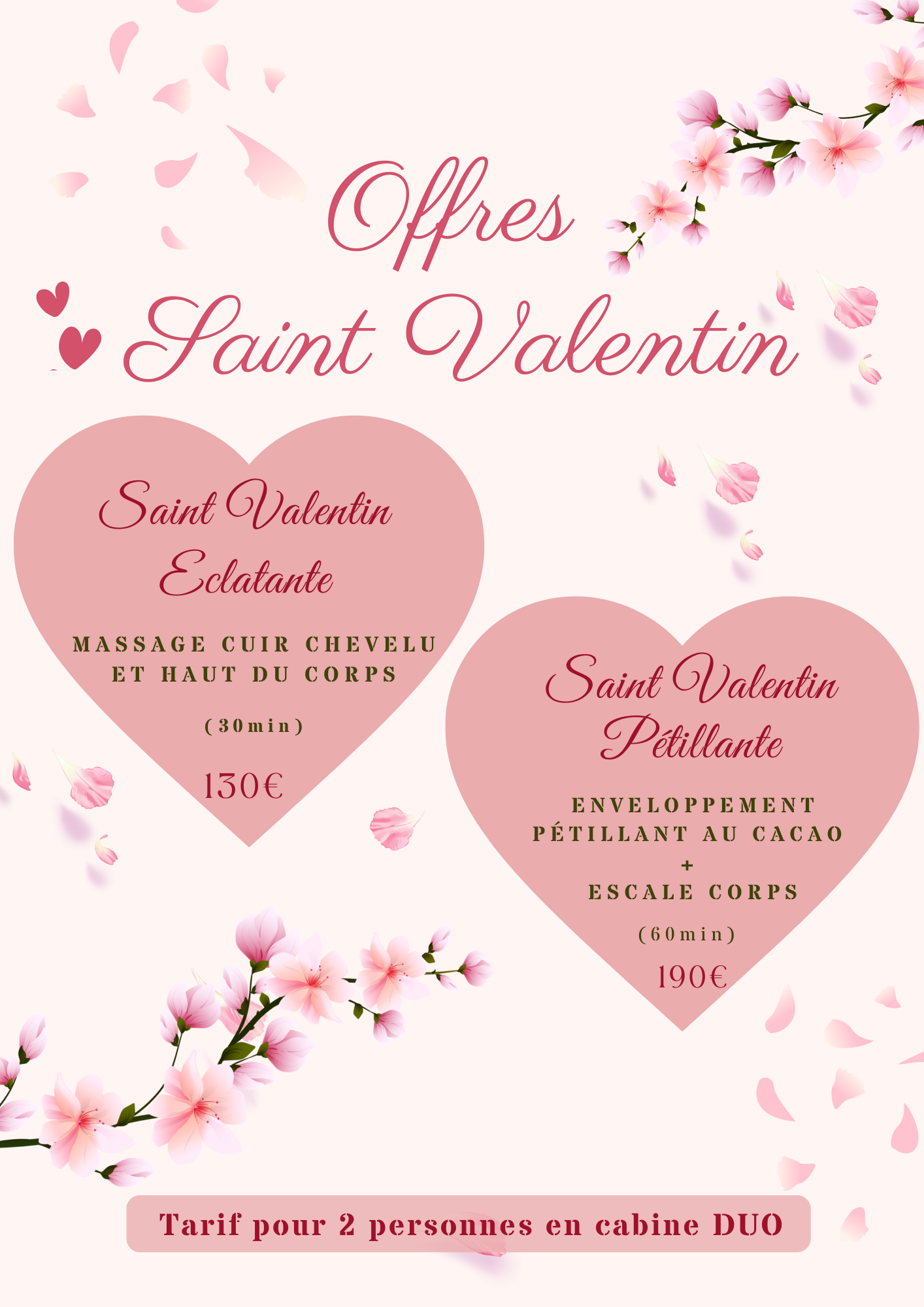 - Accès à l’espace balnéo proposé sous forme de forfaits :